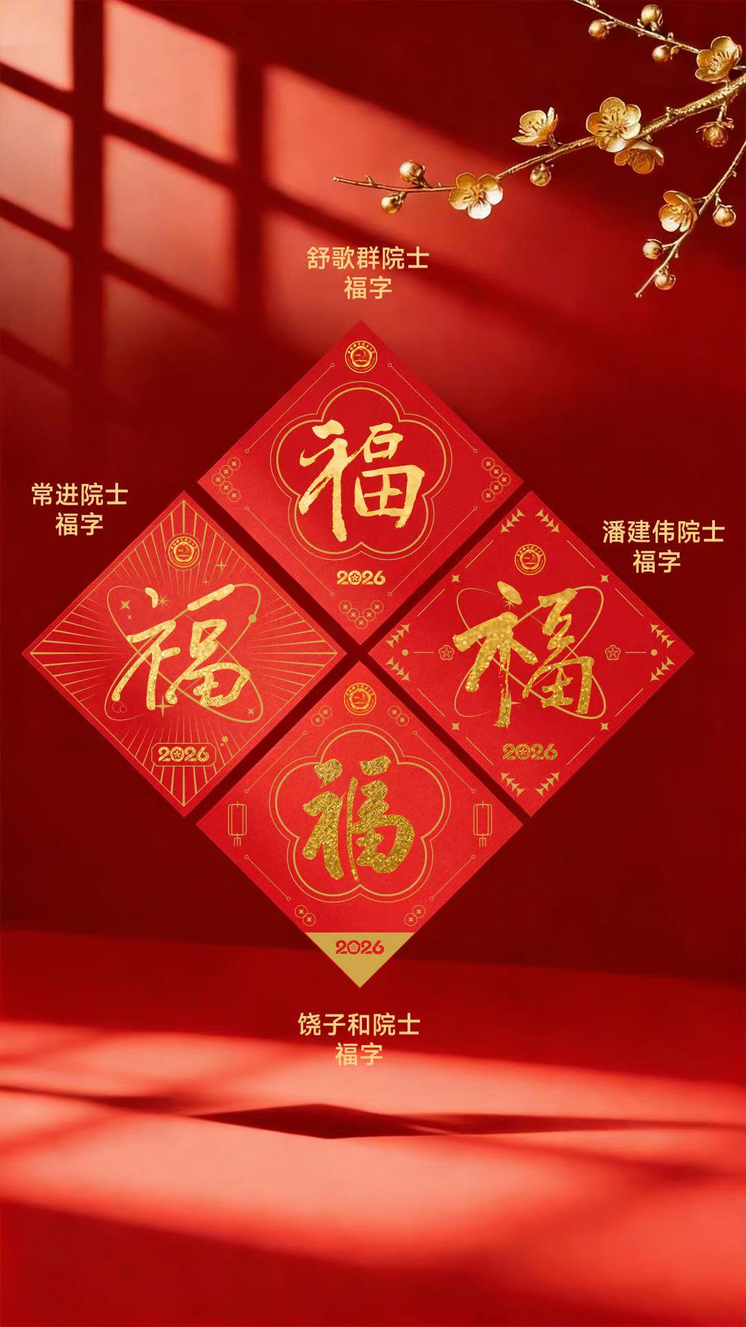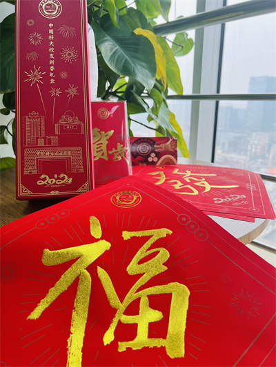 今年,中国科大校领导与教授有4位院士题写福字:党委书记舒歌群院士、校长常进院士(844)、常务副校长潘建伟院士(874)和化学学院教授徐铜文院士;常进还手写贺卡祝词;3位院士校友书写春联、福字和窗花:严加安(5911,中科院数学与系统科学研究院研究员)、饶子和(732,南开大学原校长)和崔屹院士 (9312,斯坦福大学教授)。