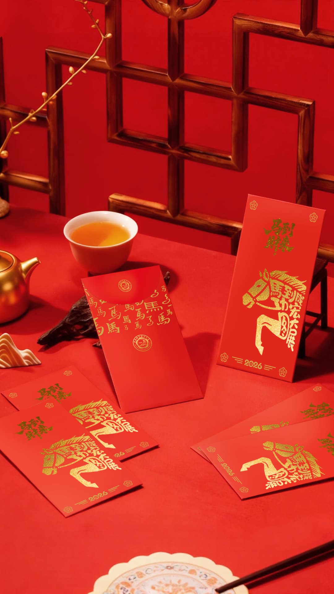 尺寸:春联:210*1180mm;横批:500*210mm;福字:300*300mm;窗花:270*270mm;红包:143*85mm;贺卡:170x170mm,折后尺寸85x170mm。